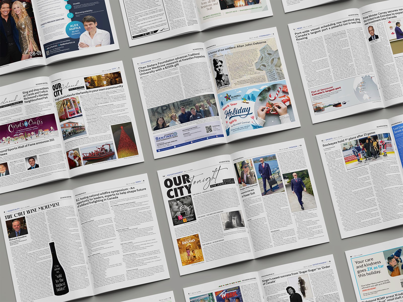 Bi-weekly deadlines with constantly shifting content. News, features, and ads all needing to coexist in one structured, on-brand issue.